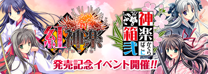 『紅神楽』と『神楽箱・弐』の発売を記念して、大阪と名古屋で発売記念イベントを開催します。参加方法・内容は会場によって異なりますので、詳細は各会場の項目を参照してください。