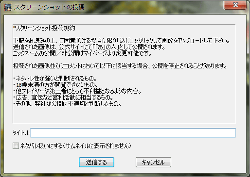 画像をネット経由で投稿する場合は、ゲーム起動時にログイン情報を入力している必要があります。